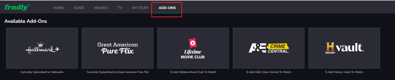 3. Under Available Add-Ons, select Hallmark+ to browse all available movies and shows!